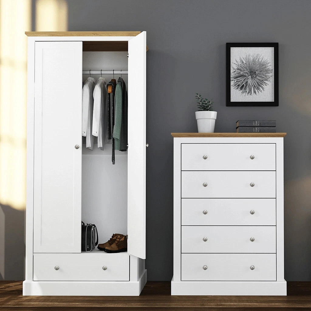 Devon White 2-Door Wardrobe – Classic Elegance with Spacious Storage
